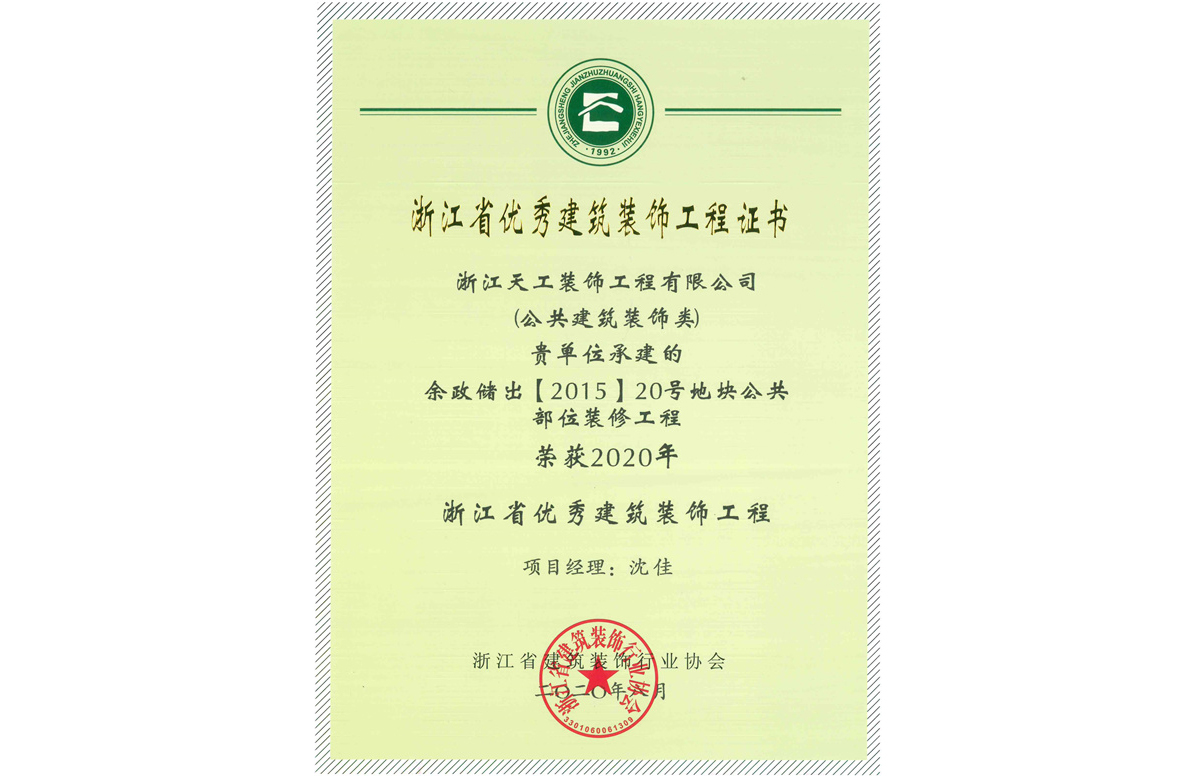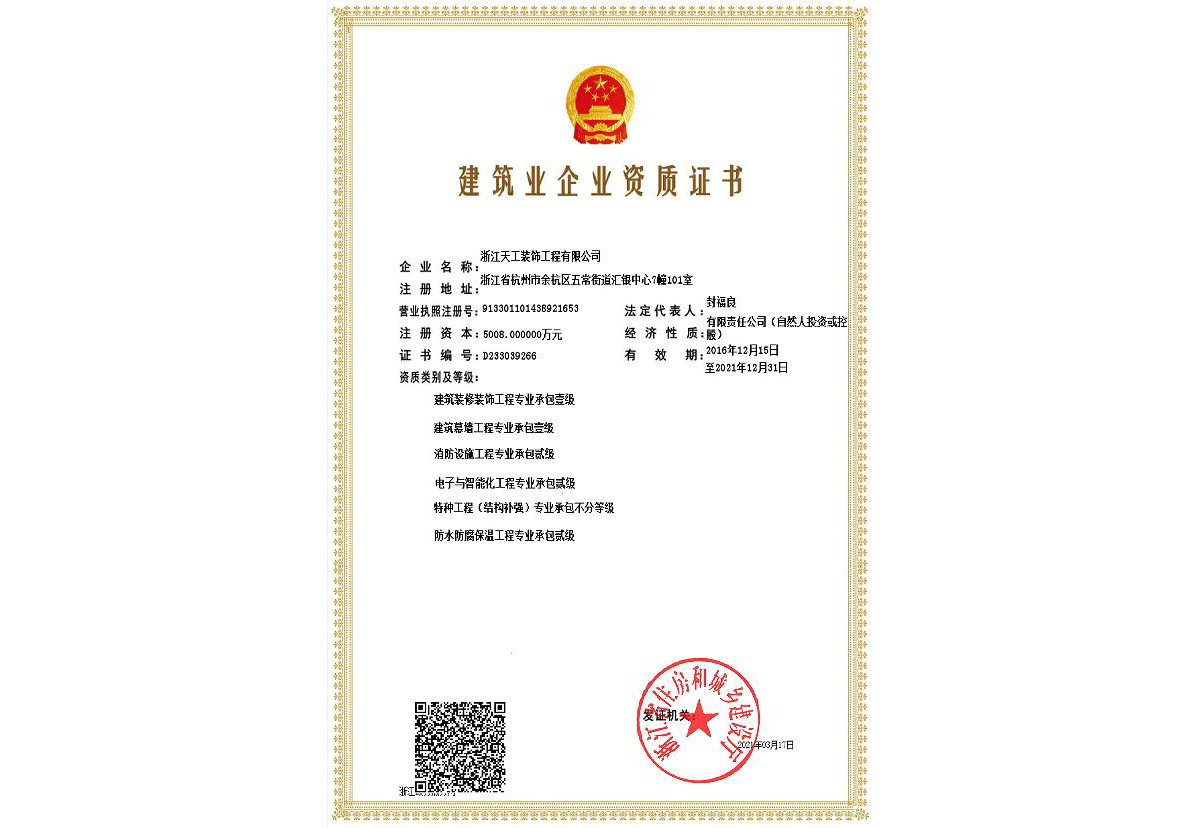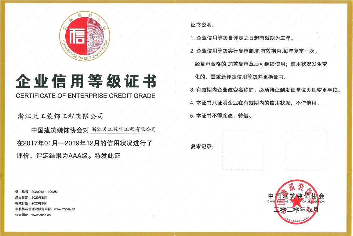 浙江天工裝飾工程有限公司成立于1994年,是一家專注于建筑行業(yè)近三十年,余杭區內規(guī)模最大、最專業(yè)的現代化專業(yè)承包企業(yè),連續(xù)十二年榮獲“余杭區建筑業(yè)十強企業(yè)”稱號。公司現任余杭區建筑裝飾行業(yè)協會會長單位、杭州市建筑裝飾行業(yè)協會副會長單位、浙江省建筑裝飾行業(yè)協會副會長單位、中國建筑裝飾協會理事單位。公司具備建筑裝修裝飾工程專業(yè)承包壹級、建筑幕墻工程專業(yè)承包壹級、建筑裝飾工程設計專項甲級、建筑幕墻工程設計專項甲級、展覽陳列工程設計施工一體化貳級、電子與智能化工程專業(yè)承包貳級、消防設施工程專業(yè)承包貳級、防水防腐保溫工程專業(yè)承包貳級,集建筑工程施工總承包、建筑機電安裝、城市及道路照明、鋼結構、結構補強、安防施工等多項資質。主要從事大型公共建筑、星級酒店的室內精裝修、建筑幕墻及建筑智能化工程的設計與施工。 天工裝飾始終把建筑裝飾當作一項 “美的事業(yè)”,在施工中嚴把質量關,不斷規(guī)范和提升工程技術標準。近年來,公司承建的浙商開元名都國際酒店I標段裝飾工程、杭州藝尚雷迪森廣場酒店裝修工程、余杭區時代廣場5號樓(市民之家)室內裝飾工程、永安之星室內裝飾工程、青山湖科技城創(chuàng)業(yè)廣場裝修工程、杭州未來科技城醫(yī)院室內裝飾工程、杭州師范大學附屬實驗學校裝修工程、杭州老板電器股份有限公司辦公樓裝飾工程、深川控股集團綜合樓幕墻工程、浙江省科技信息研究院幕墻工程、北航杭州創(chuàng)新研究院(余杭)內裝及智能化提升改造項目(研究生院)工程、臨平新城人才服務中心設計釆購施工(EPC)工程總承包項目、浙江大學先進電氣裝備創(chuàng)新中心室內外裝飾及改造項目設計采購施工(EPC)工程總承包項目等,先后獲得“中國建筑工程裝飾獎”、“全國建筑裝飾科技創(chuàng)新獎”、浙江省建設工程“錢江杯”優(yōu)質工程獎、杭州市建設工程“西湖杯”優(yōu)質工程獎、嘉興市建設工程“南湖杯”優(yōu)質工程獎、“浙江省優(yōu)秀建筑裝飾工程獎”、“浙江省優(yōu)質安裝質量獎”等榮譽。 天工裝飾恪守“誠實守信、文明經營”,近年來公司得到了客戶的信賴也獲得了業(yè)界的好評,先后被評為“國家級守合同重信用單位”、“全國建筑裝飾行業(yè)AAA級信用企業(yè)”、“全國百家科技創(chuàng)新型企業(yè)”、“浙江省AAA級守合同重信用單位”、“人民銀行信用等級AAA級企業(yè)”、“浙江省信用管理示范企業(yè)”、“浙江省誠信企業(yè)”、“浙江省建筑裝飾行業(yè)強優(yōu)企業(yè)”、“杭州市建筑業(yè)優(yōu)秀企業(yè)”、“余杭區建筑業(yè)十強企業(yè)”、 “余杭區人民政府質量獎”等榮譽。